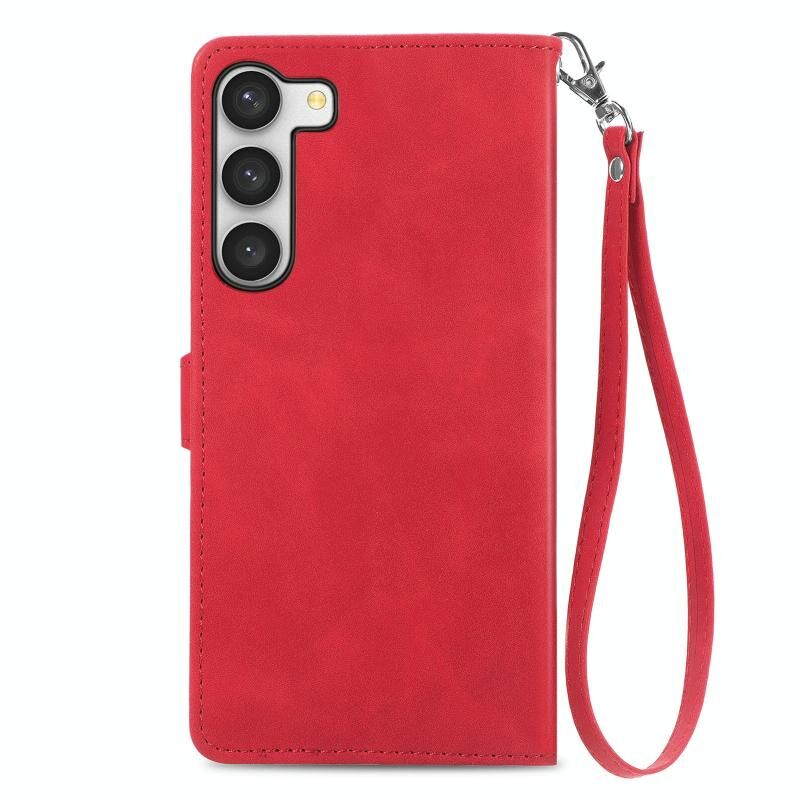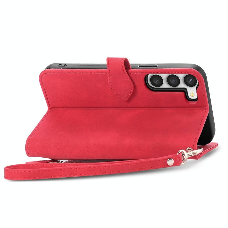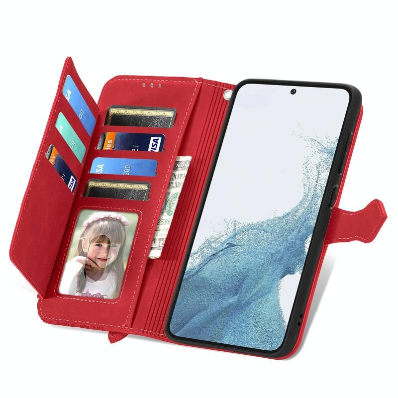 Για Samsung Galaxy S23 5G ανάγλυφο λουλούδι φερμουάρ δερμάτινη θήκη τηλεφώνου (κόκκινο)