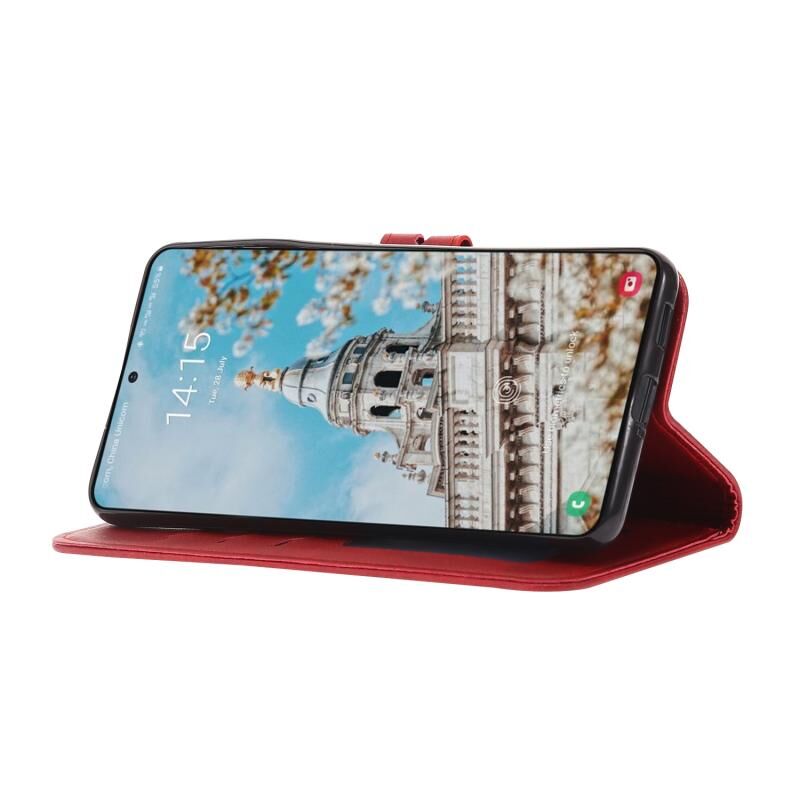 Για Samsung Galaxy S23 5G ανάγλυφο Happy Cat μοτίβο Flip υπόθεση τηλεφώνου δέρμα (κόκκινο)