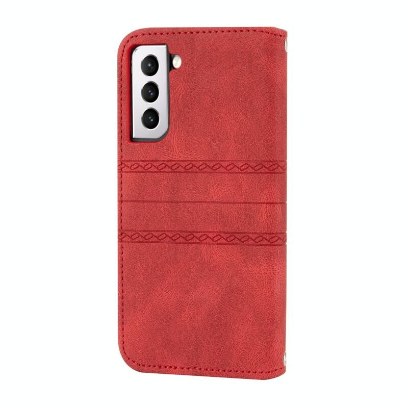 Για Samsung Galaxy S23 5G ανάγλυφο ρίγες δέρμα δέρμα αίσθηση τηλέφωνο υπόθεση (κόκκινο)