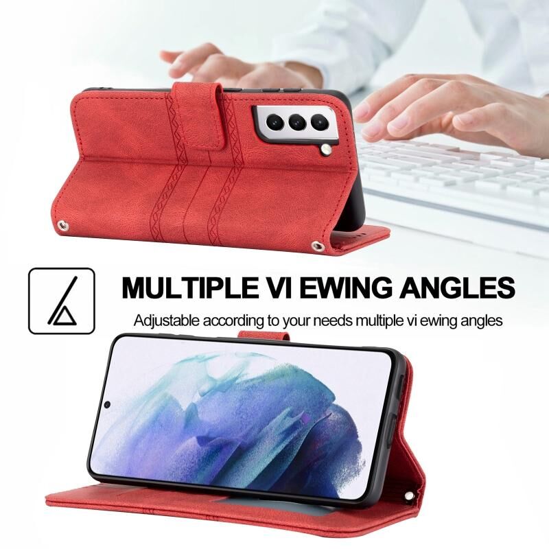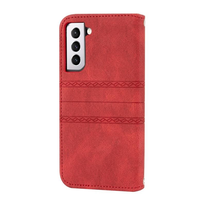 Για Samsung Galaxy S23+ 5G ανάγλυφο ρίγες δέρμα αίσθηση δέρμα τηλέφωνο υπόθεση (κόκκινο)