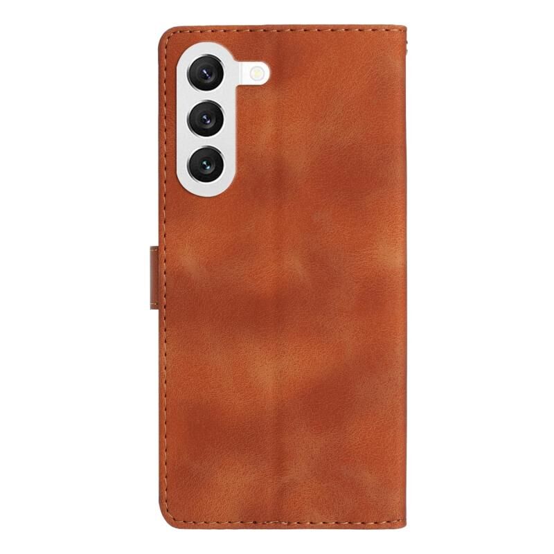 Για Samsung Galaxy S23 5G λουλούδι πεταλούδα ανάγλυφο μοτίβο δερμάτινη θήκη τηλεφώνου (καφέ)