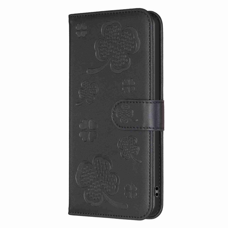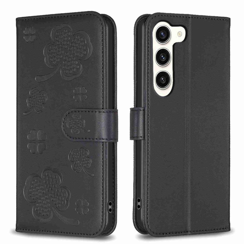 For Samsung Galaxy S23+ 5G Four-leaf Embossed Leather Phone Case(Black)