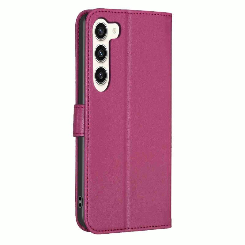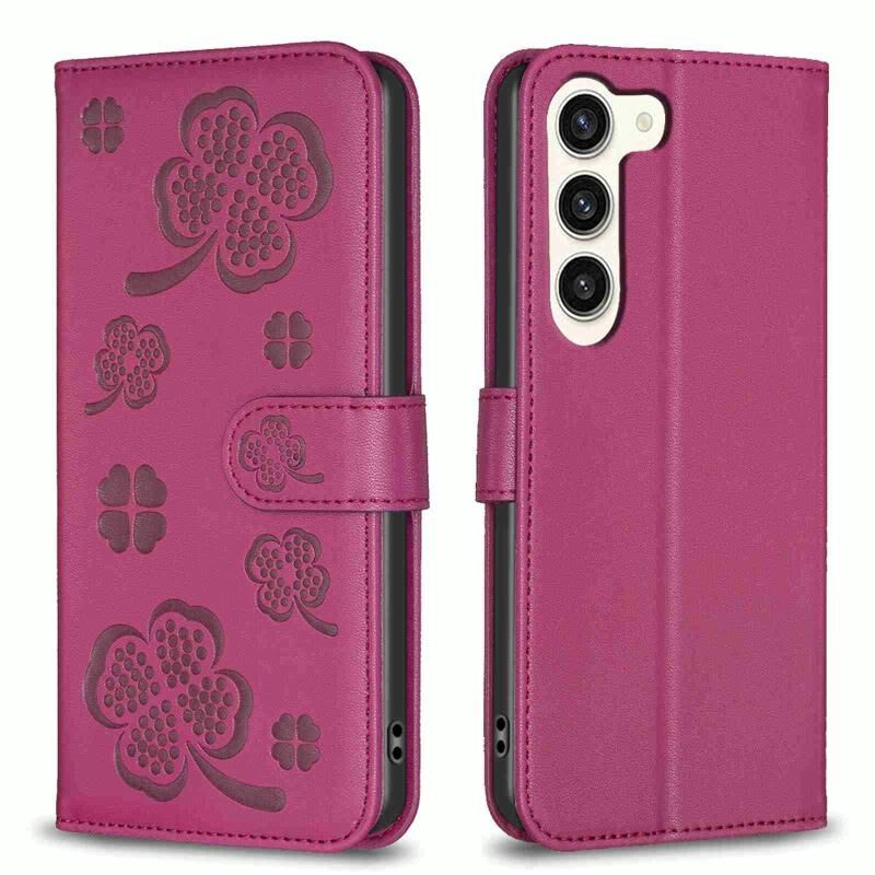 For Samsung Galaxy S23 5G Four-leaf Embossed Leather Phone Case(Rose Red)