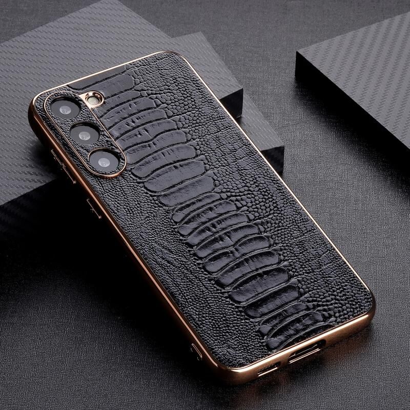 Θήκη τηλεφώνου Samsung Galaxy S23+ 5G από γνήσιο δέρμα, σειρά Weilai, νανο-επίχρυση (Μαύρο)