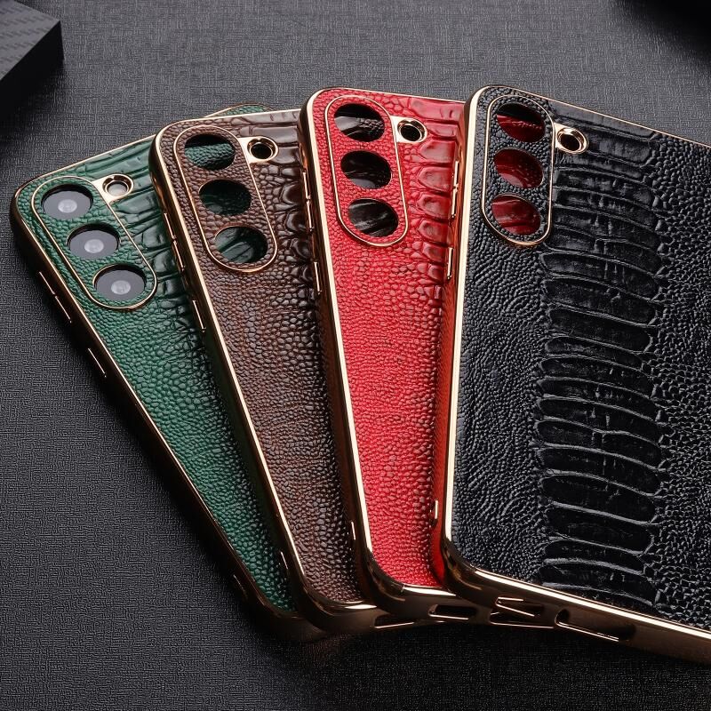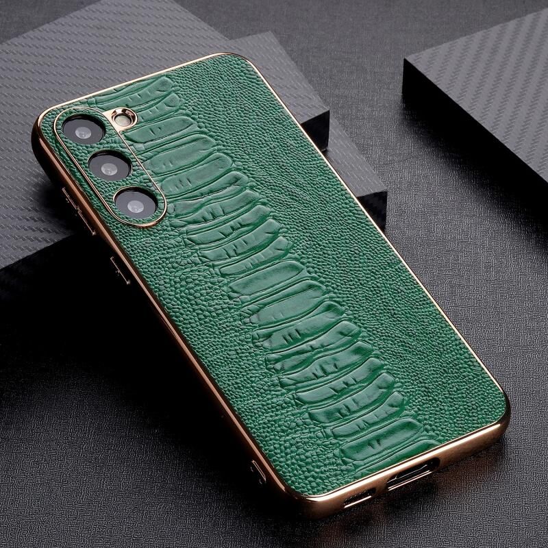 Θήκη τηλεφώνου Samsung Galaxy S23+ 5G από γνήσιο δέρμα, σειρά Weilai, νανο-επίχρυση (Πράσινο)