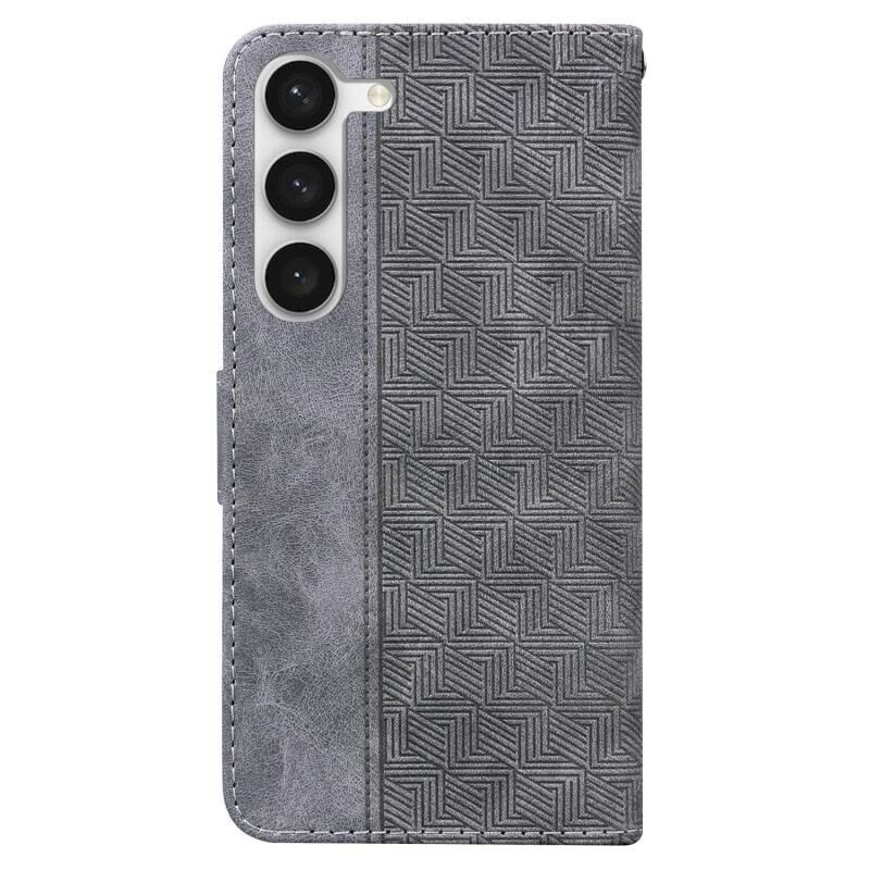 Για το Samsung Galaxy S23+ 5G γεωμετρική ανάγλυφη θήκη τηλεφώνου από δέρμα (Γκρι)
