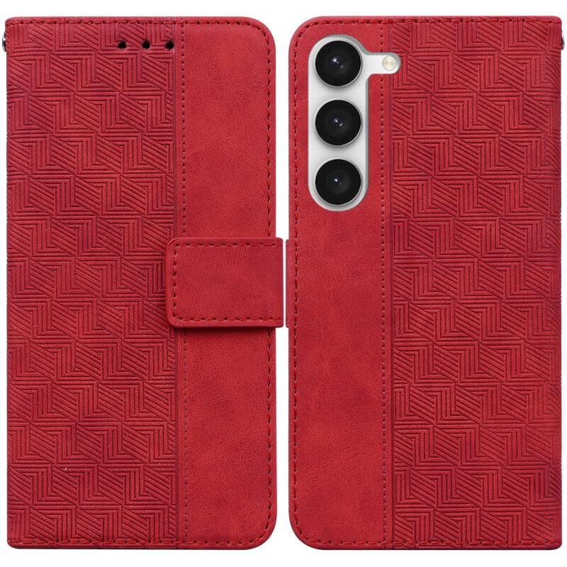 Για Samsung Galaxy S23+ 5G γεωμετρική ανάγλυφη θήκη τηλεφώνου με δερμάτινη επένδυση (κόκκινο)