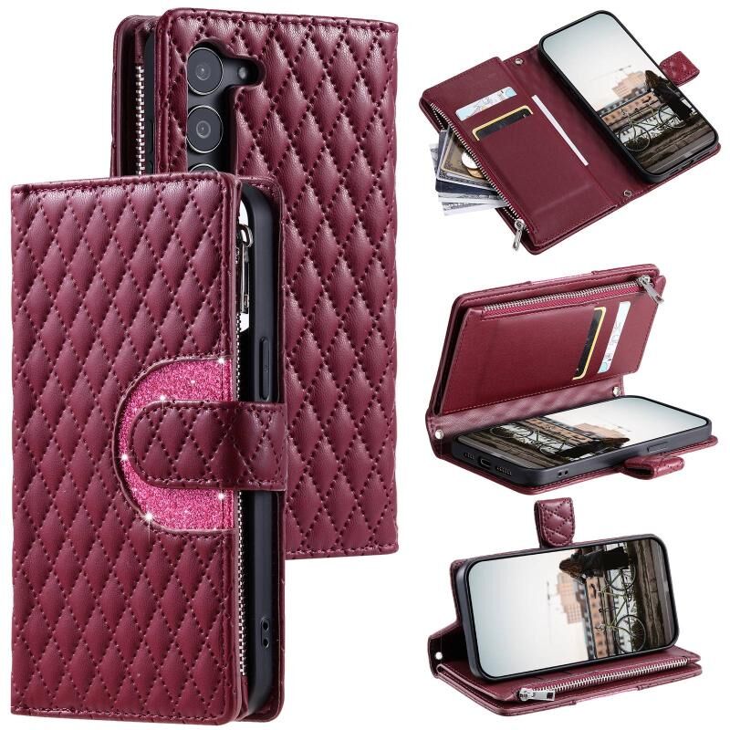Για Samsung Galaxy S23+ 5G Glitter Lattice φερμουάρ πορτοφόλι δερμάτινη θήκη τηλεφώνου (Κρασοκόκκινο)