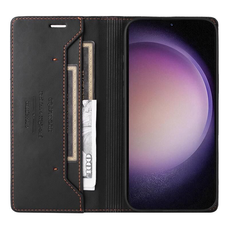 For Samsung Galaxy S23 5G GQUTROBE G01 RFID Anti-theft Leather Phone Case(Black) (GQUTROBE)