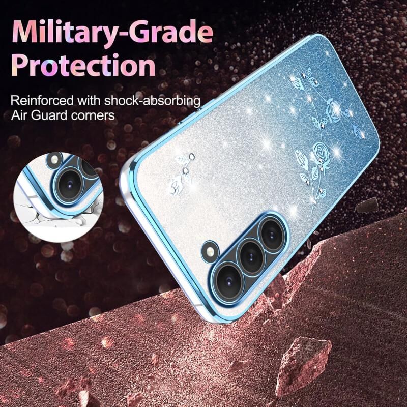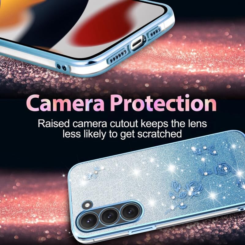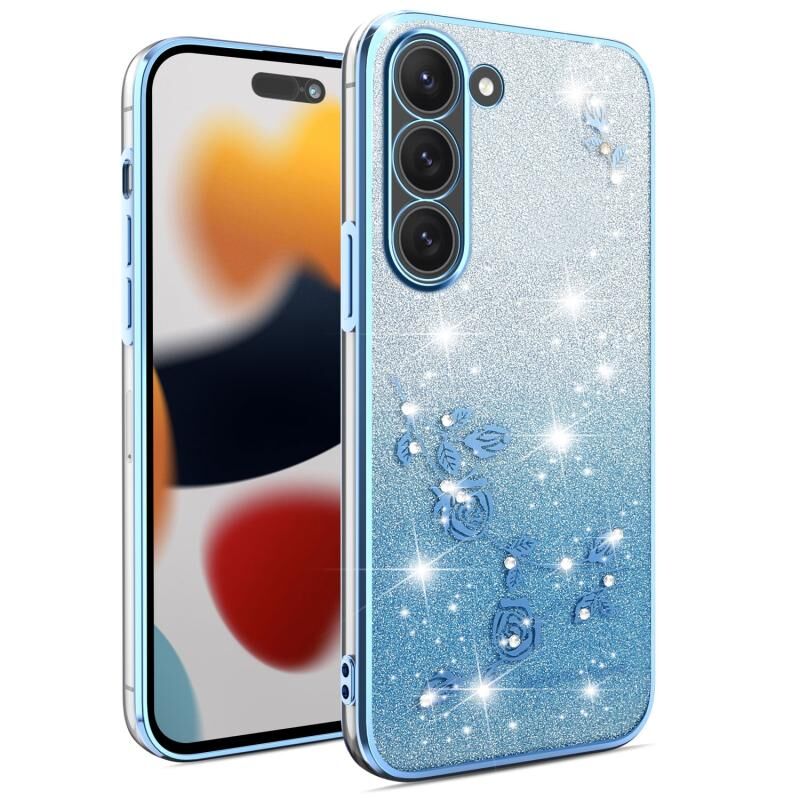 For Samsung Galaxy S23 5G Gradient Glitter Flower All-inclusive Phone Case(Blue)