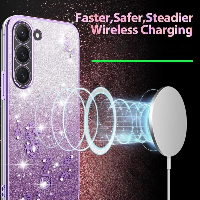 For Samsung Galaxy S23 5G Gradient Glitter Flower All-inclusive Phone Case(Purple)