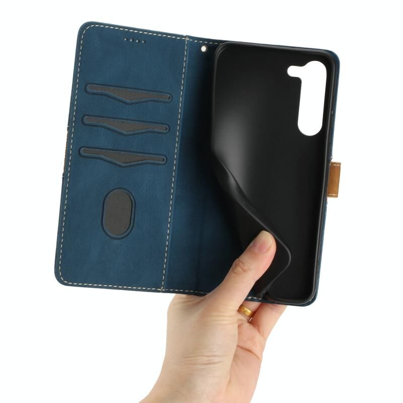 Για Samsung Galaxy S23+ 5G Grid Stitching Δερμάτινη θήκη τηλεφώνου με κορδόνι (μπλε)