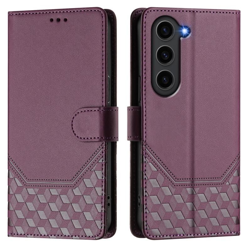 Για Samsung Galaxy S23+ 5G Honeycomb ανάγλυφη RFID δερμάτινη θήκη τηλεφώνου (Violet)