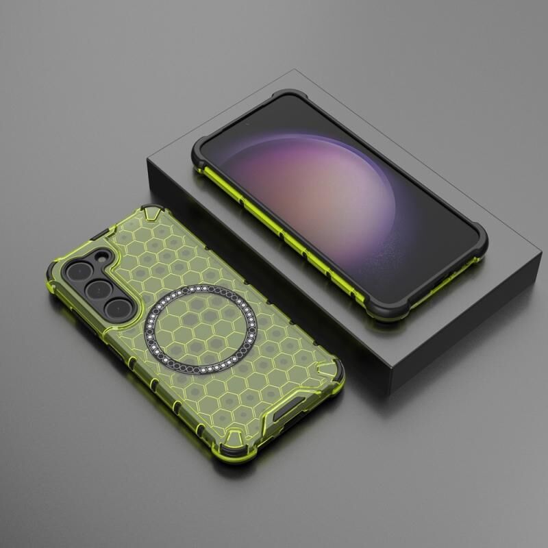 For Samsung Galaxy S23 5G Honeycomb Magnetic Ring Shockproof Phone Case(Green)