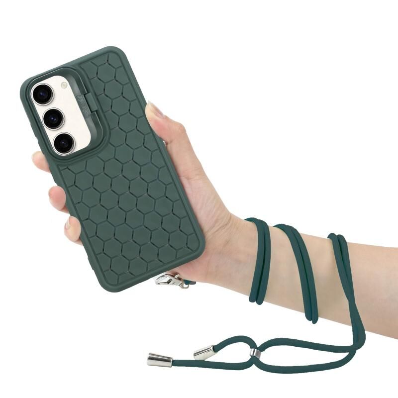Για Samsung Galaxy S23 + 5G κηρήθρα ακτινοβολία κάτοχος TPU τηλέφωνο υπόθεση με κορδόνι (πράσινο)