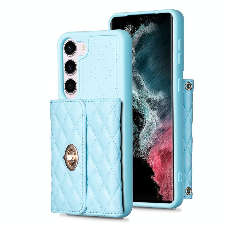 Θήκη τηλεφώνου Samsung Galaxy S23 5G, οριζόντια, δερμάτινη με ρομβικό σχέδιο και μεταλλική αγκράφα πορτοφολιού (Μαύρο)