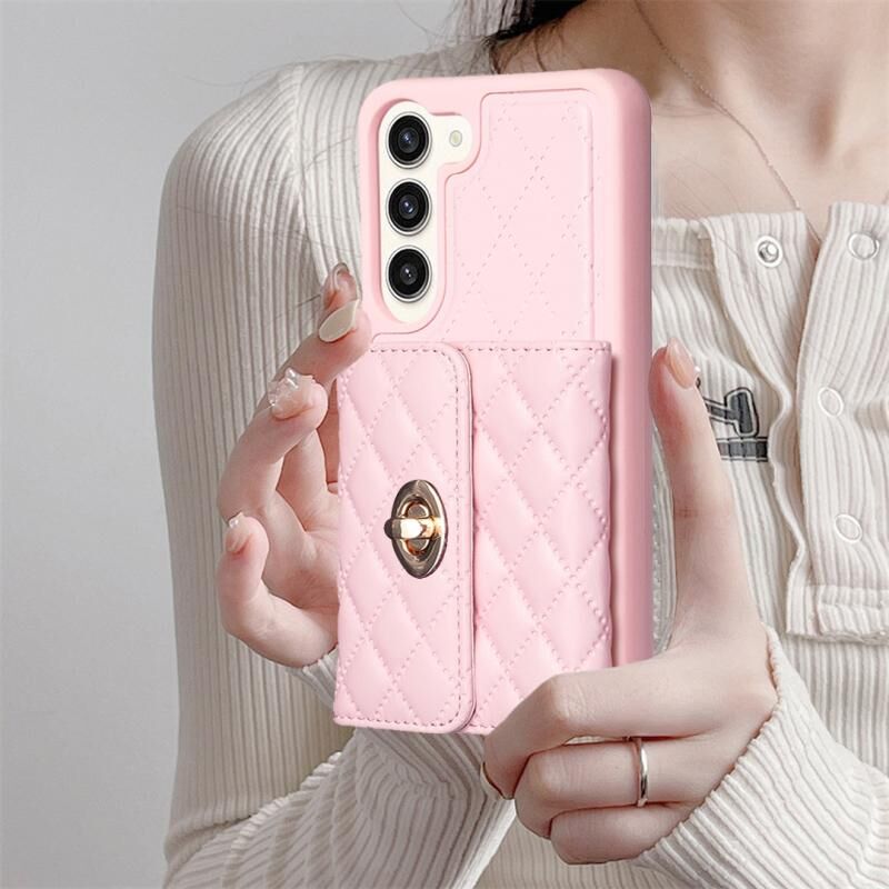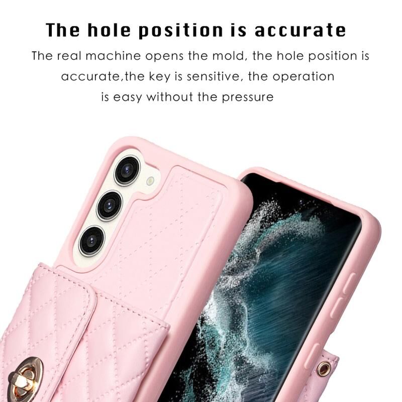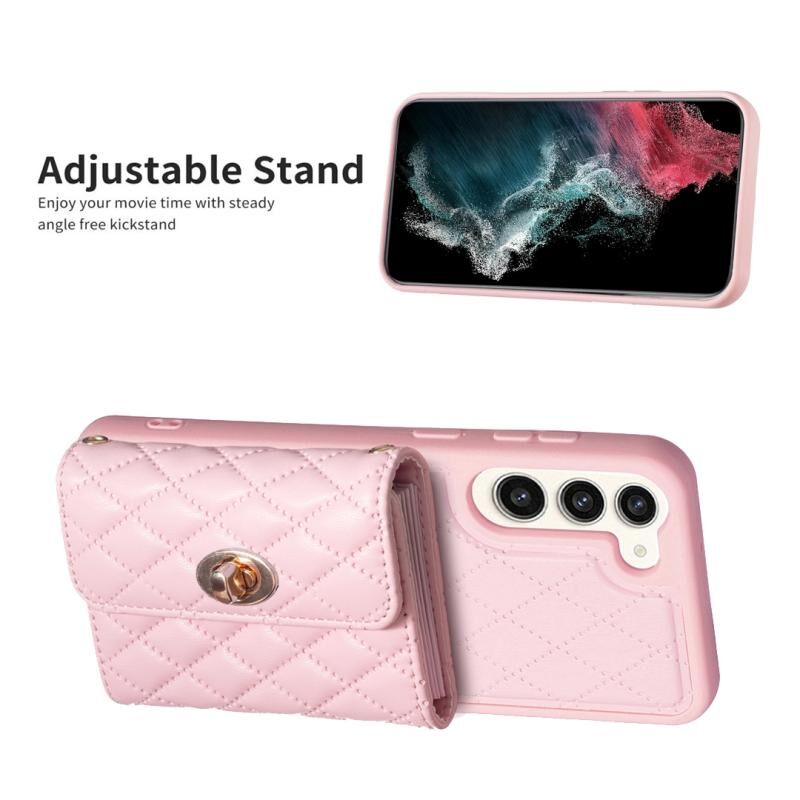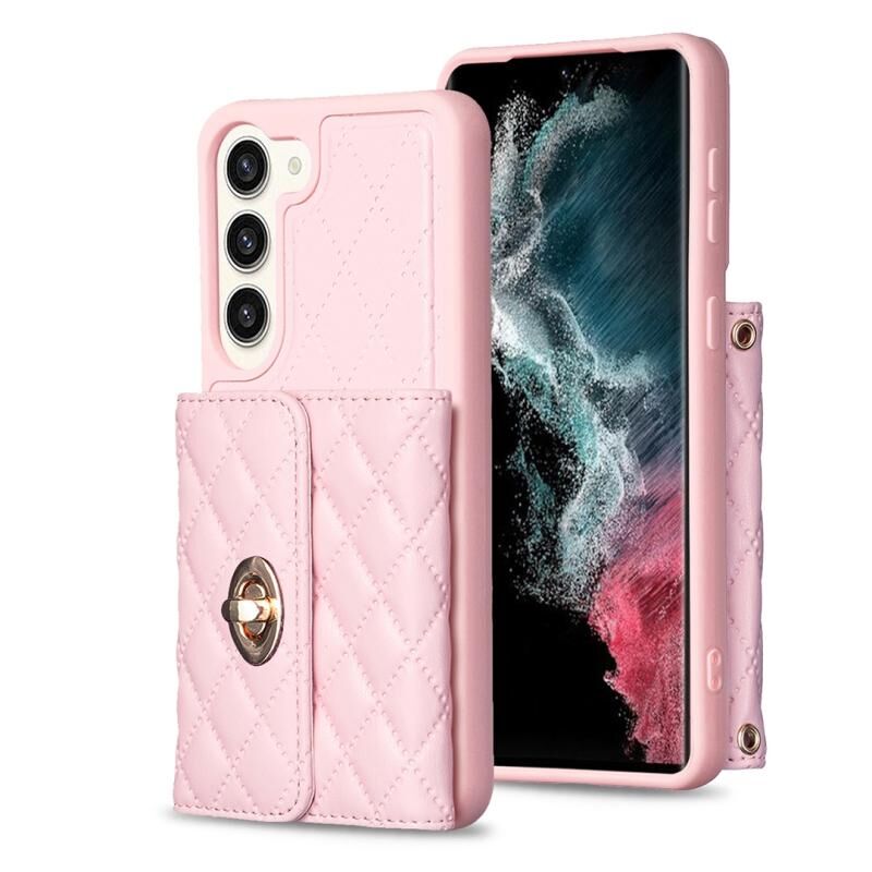 Για Samsung Galaxy S23 + 5G Οριζόντια μεταλλική πόρπη πορτοφόλι ρομβοειδή δερμάτινη θήκη τηλεφώνου (ροζ)