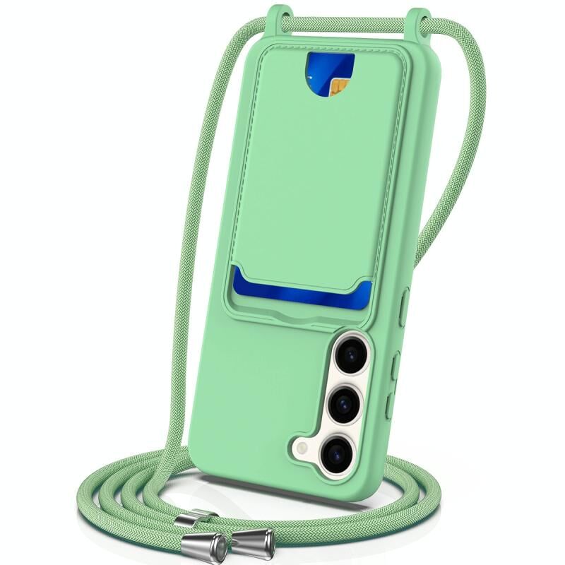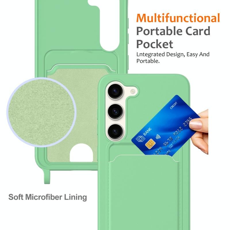 Για Samsung Galaxy S23 + 5G ενσωματωμένη κάρτα τσάντα τσάντα στερεό χρώμα υγρό σιλικόνης τηλέφωνο υπόθεση με κορδόνι (πράσινο)