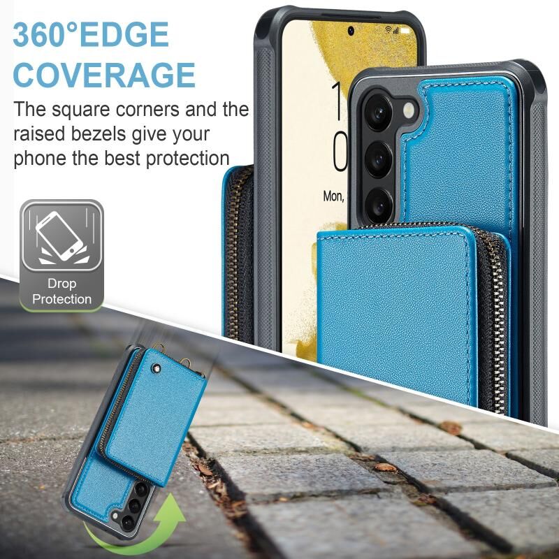 Για Samsung Galaxy S23 5G JEEHOOD C22 σειρά φερμουάρ πορτοφόλι δερμάτινη θήκη τηλεφώνου με διπλό κορδόνι (μπλε) (JEEHOOD)
