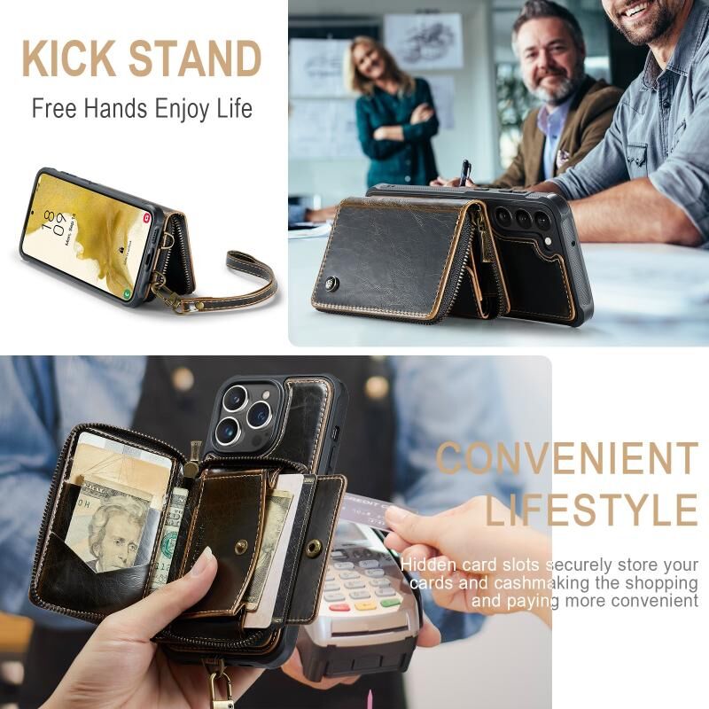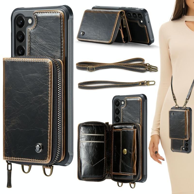 Για Samsung Galaxy S23 5G JEEHOOD C22 σειρά φερμουάρ πορτοφόλι δερμάτινη θήκη τηλεφώνου με διπλό κορδόνι (καφέ) (JEEHOOD)