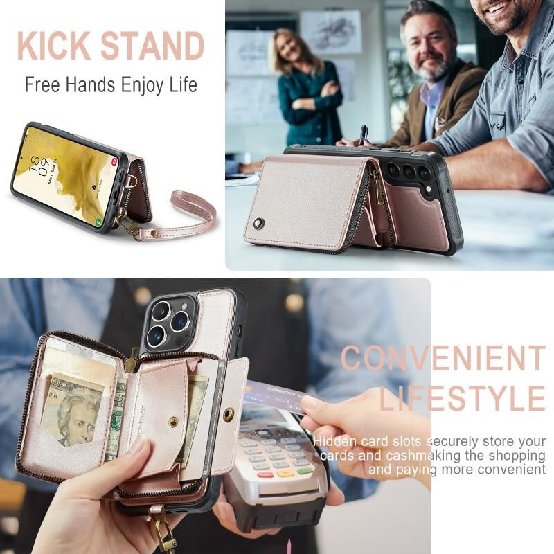 Για Samsung Galaxy S23 5G JEEHOOD C22 σειρά φερμουάρ πορτοφόλι δερμάτινη θήκη τηλεφώνου με διπλό κορδόνι (Rose Gold) (JEEHOOD)