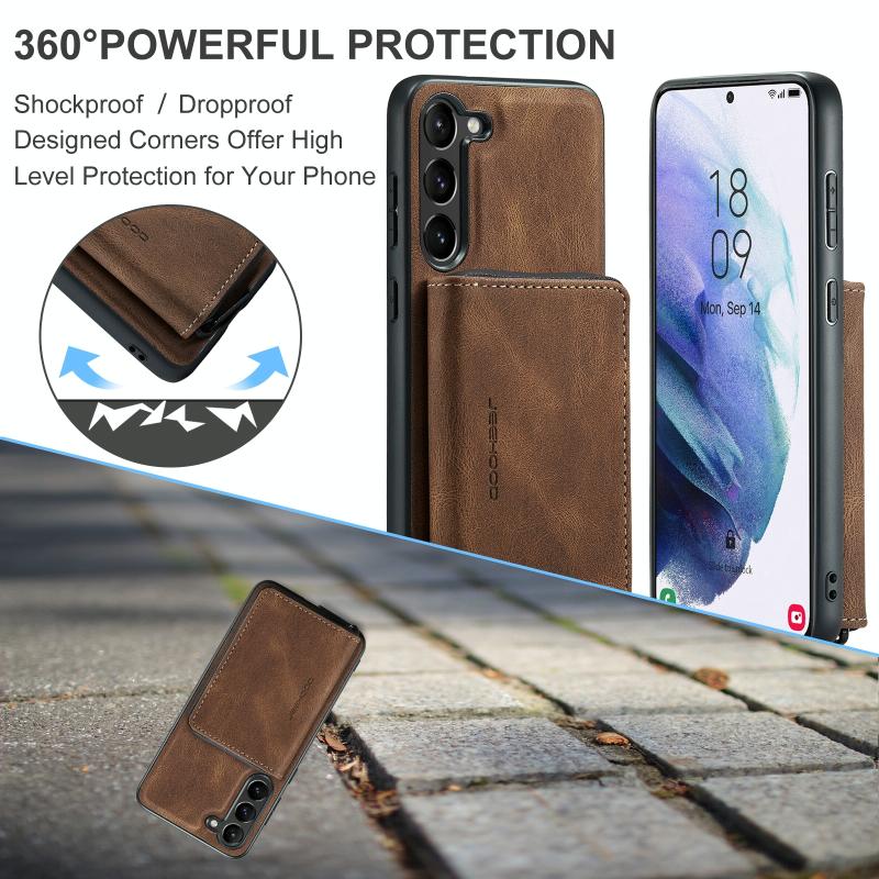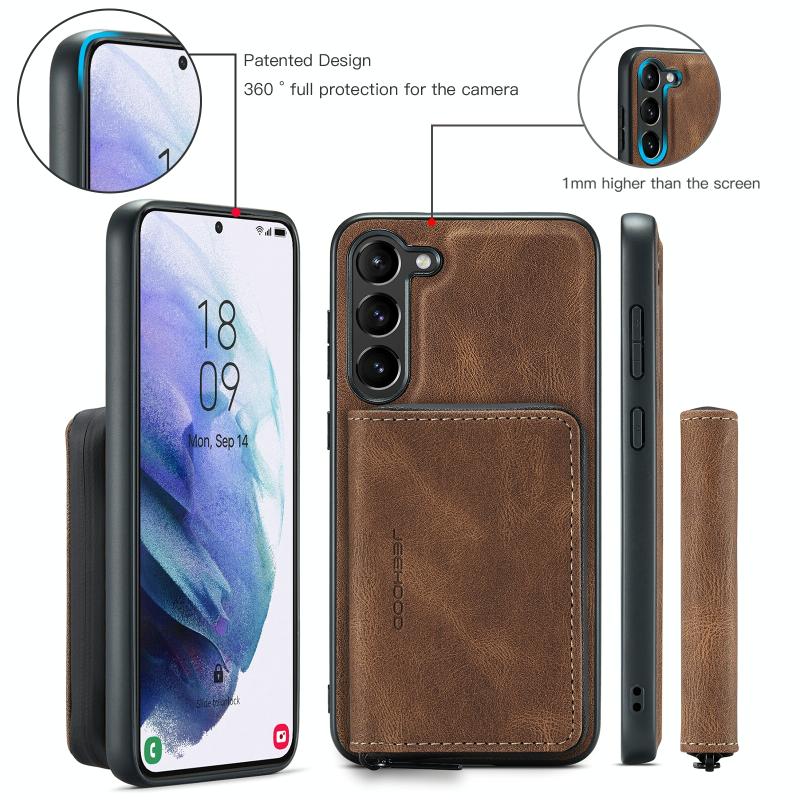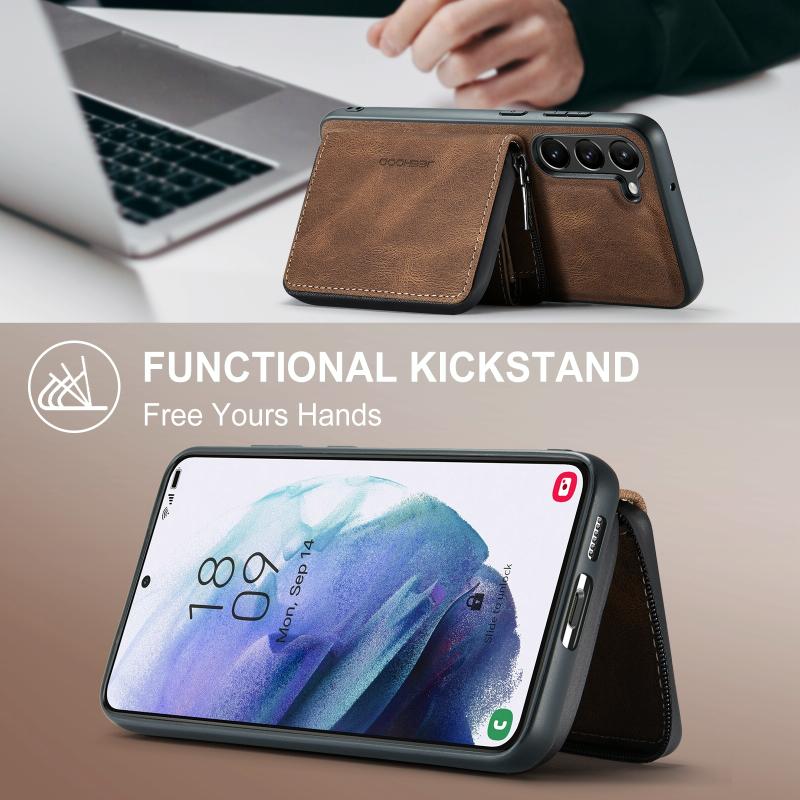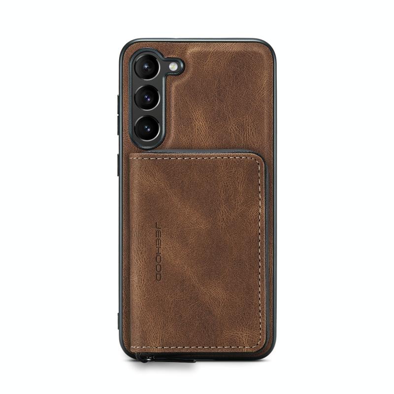 Θήκη τηλεφώνου Samsung Galaxy S23+ 5G JEEHOOD Μαγνητικό Πορτοφόλι με Φερμουάρ από Δέρμα (Ροζ) (Καφέ)