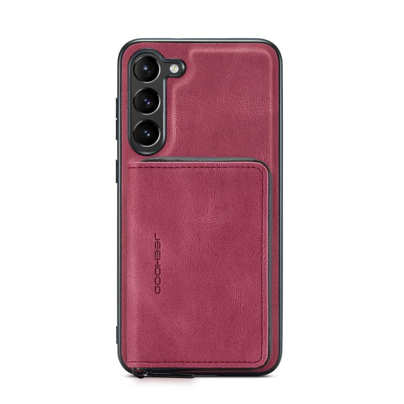 Θήκη τηλεφώνου Samsung Galaxy S23+ 5G JEEHOOD Μαγνητικό Πορτοφόλι με Φερμουάρ από Δέρμα (Ροζ) (Κόκκινο)