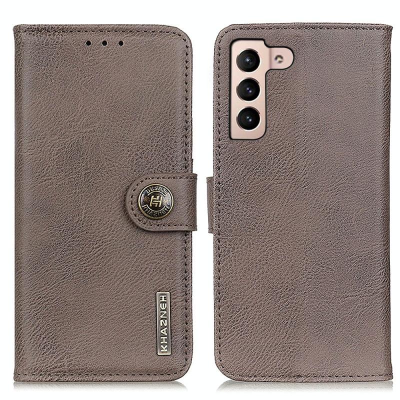 Θήκη τηλεφώνου Samsung Galaxy S23 5G KHAZNEH με υφή δέρματος μοσχαριού, οριζόντια, αναδιπλούμενη από δέρμα (Καφέ)