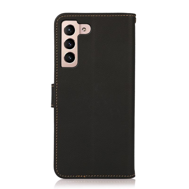 Θήκη τηλεφώνου Samsung Galaxy S23 5G KHAZNEH Custer από γνήσιο δέρμα με προστασία RFID (Μαύρο)