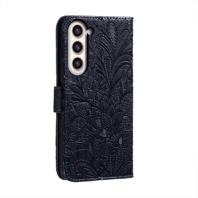 Για Samsung Galaxy S23 + 5G Lace λουλούδι ανάγλυφο Flip δερμάτινη θήκη τηλεφώνου (σκούρο μπλε)