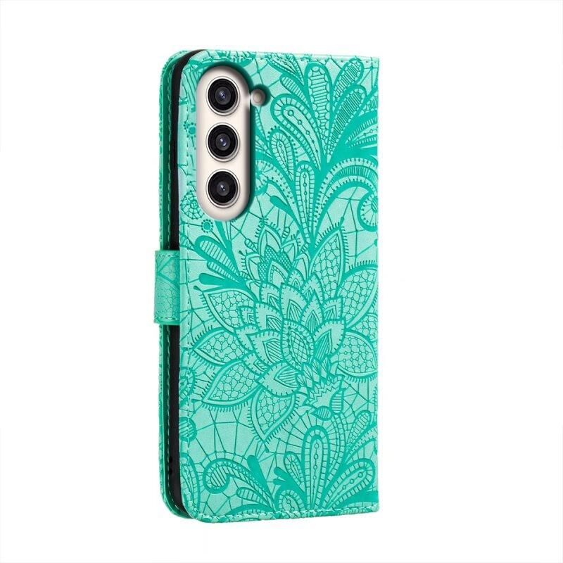Για Samsung Galaxy S23 + 5G Lace λουλούδι ανάγλυφο Flip υπόθεση τηλεφώνου δέρμα (πράσινο)