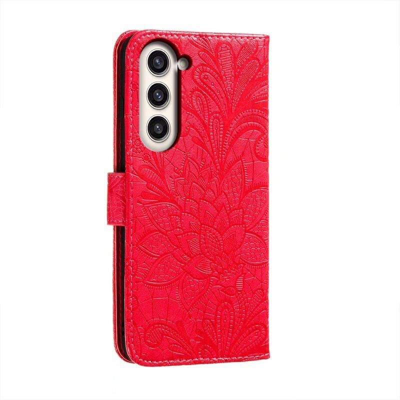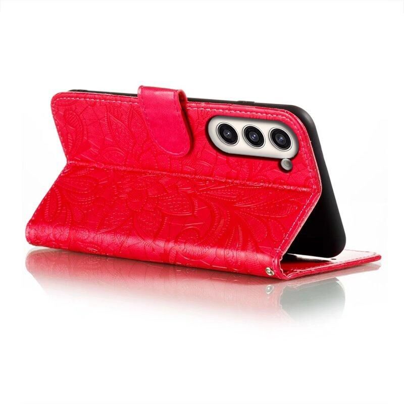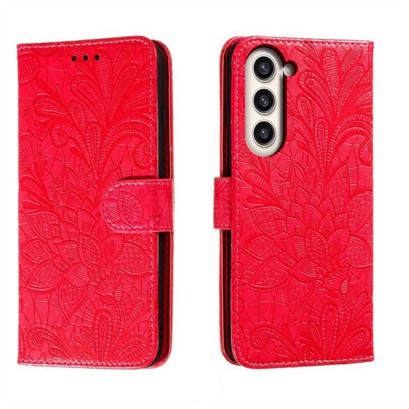 Για Samsung Galaxy S23 + 5G Lace λουλούδι ανάγλυφο Flip υπόθεση τηλεφώνου δέρμα (κόκκινο)