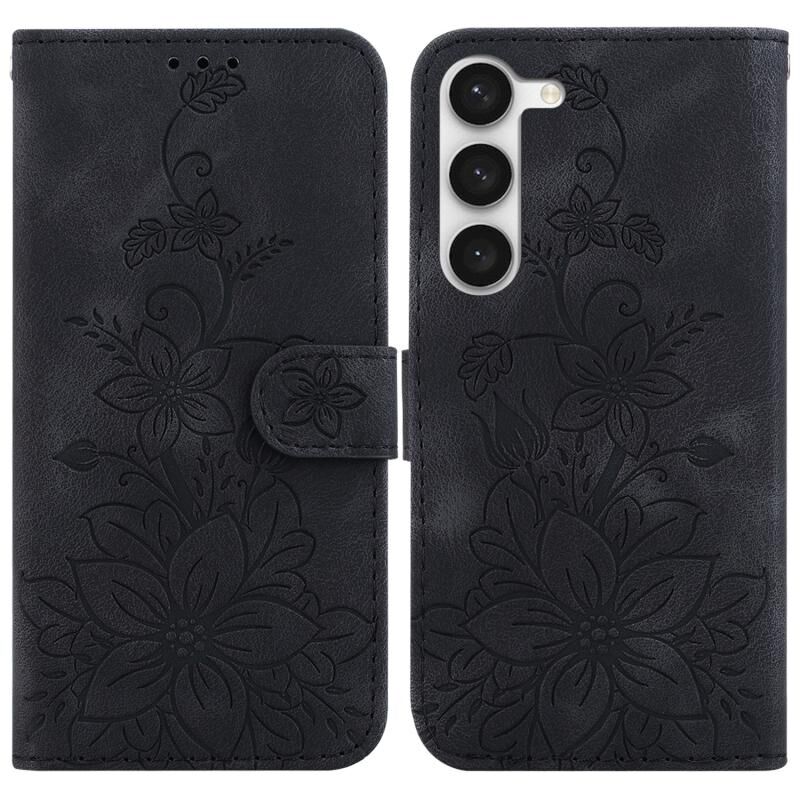Θήκη τηλεφώνου Samsung Galaxy S23 5G από δέρμα με ανάγλυφο σχέδιο Lily (Πράσινο)