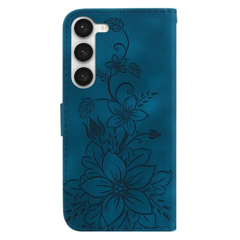 Θήκη τηλεφώνου Samsung Galaxy S23+ 5G από δέρμα με ανάγλυφο Lily (Μωβ)