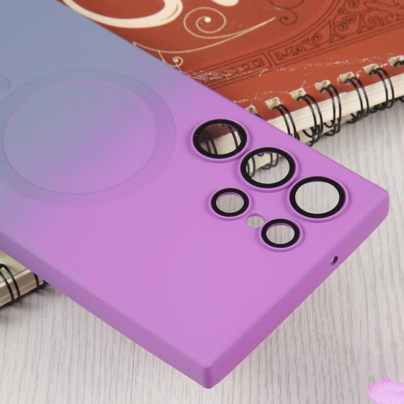 Θήκη τηλεφώνου για Samsung Galaxy S23+ 5G, Υγρή σιλικόνη TPU με διαβάθμιση χρώματος, συμβατή με MagSafe (Μωβ Γκρι)