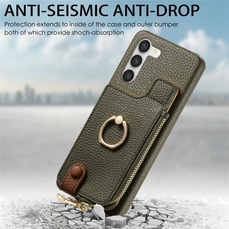 Για Samsung Galaxy S23 + 5G Litchi δέρμα λάδι Edge δαχτυλίδι φερμουάρ πορτοφόλι πίσω υπόθεση τηλεφώνου (πράσινο)