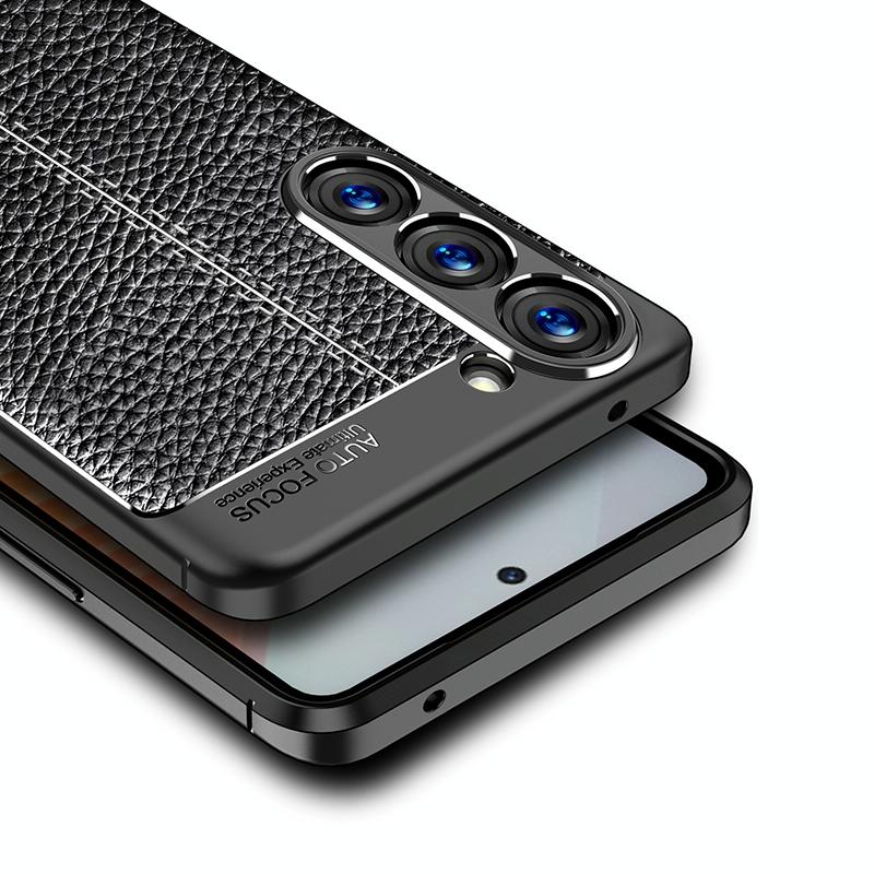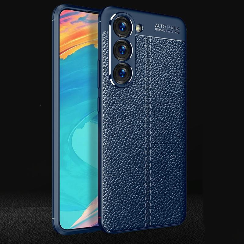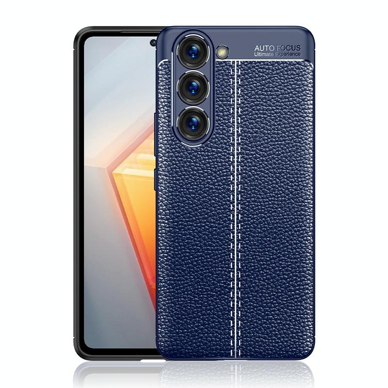 Θήκη κινητού τηλεφώνου Samsung Galaxy S23+ 5G από TPU με υφή δέρματος λύτσι, αντικραδασμική (Μπλε)