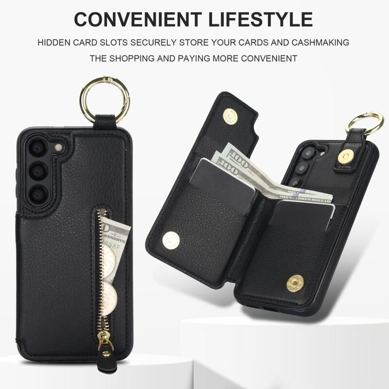 Για Samsung Galaxy S23 + 5G Litchi υφή φερμουάρ διπλή πόρπη κάρτα τσάντα υπόθεση τηλεφώνου (μαύρο)
