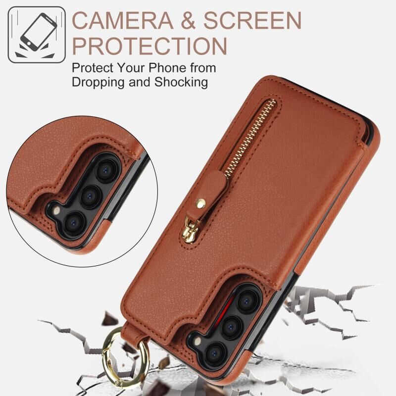 Για Samsung Galaxy S23 5G Litchi υφή φερμουάρ διπλή πόρπη κάρτα τσάντα υπόθεση τηλεφώνου (καφέ)