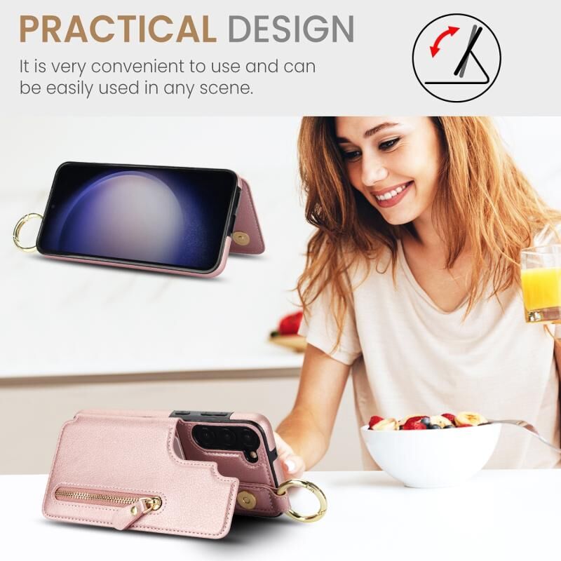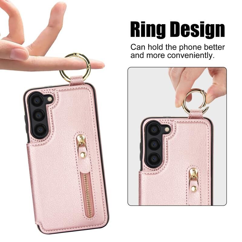 Για Samsung Galaxy S23 5G Litchi υφή φερμουάρ διπλή πόρπη κάρτα τσάντα υπόθεση τηλεφώνου (Rose Gold)