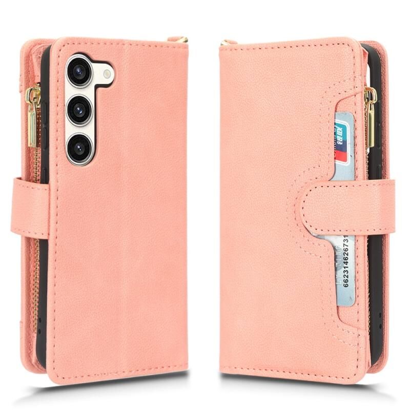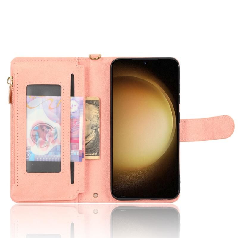 Για Samsung Galaxy S23 5G Litchi υφή φερμουάρ δερμάτινη θήκη τηλεφώνου (ροζ)