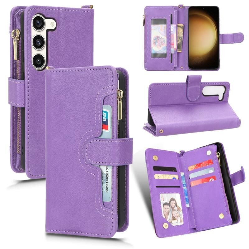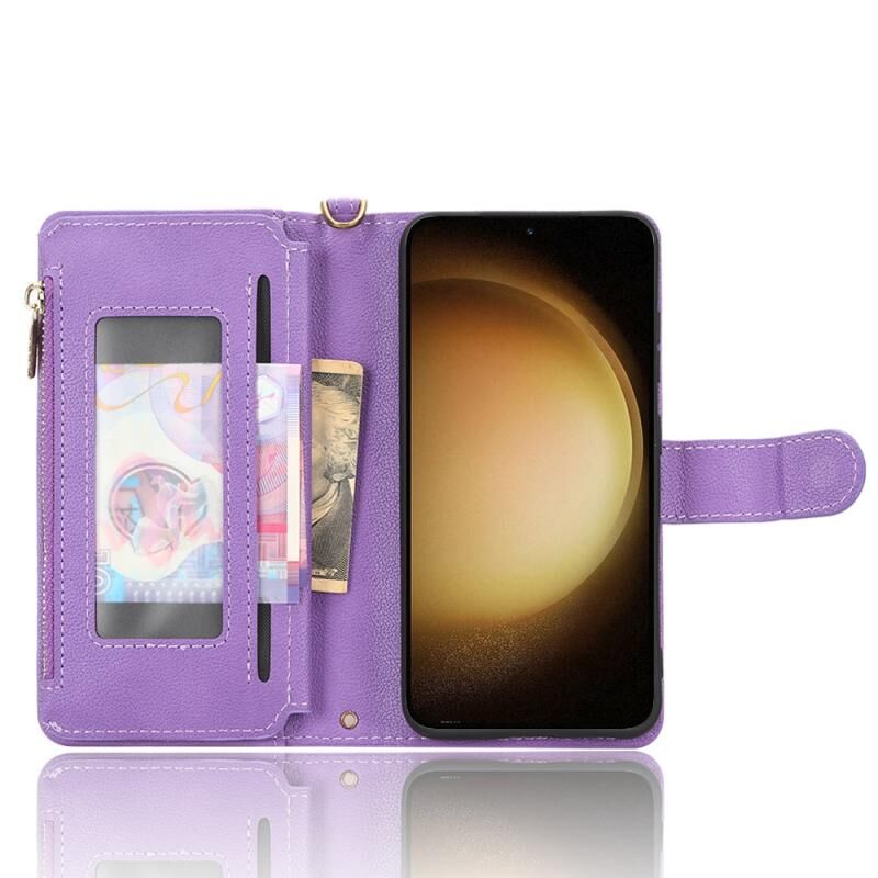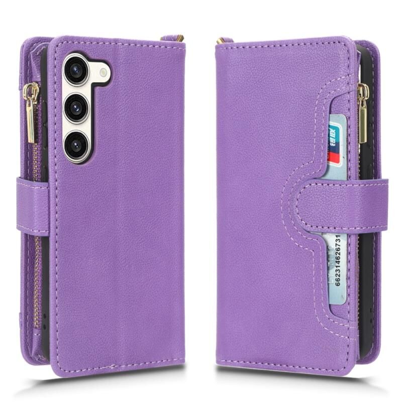 Για Samsung Galaxy S23 5G Litchi υφή φερμουάρ δερμάτινη θήκη τηλεφώνου (μωβ)