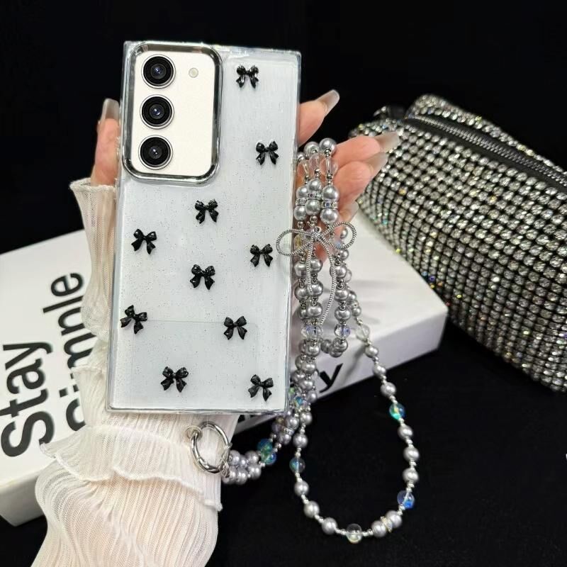 Θήκη τηλεφώνου TPU για Samsung Galaxy S23+ 5G, με μικρή φρέσκια αλυσίδα λαιμού σε στυλ φιόγκου (Μαύρο)
