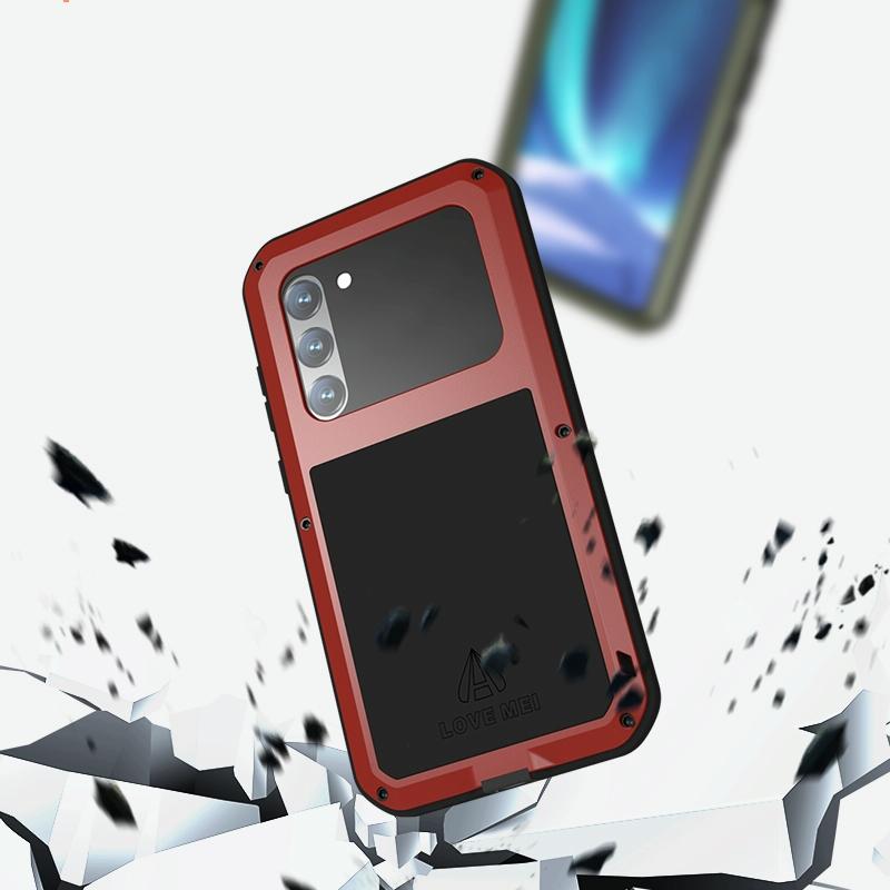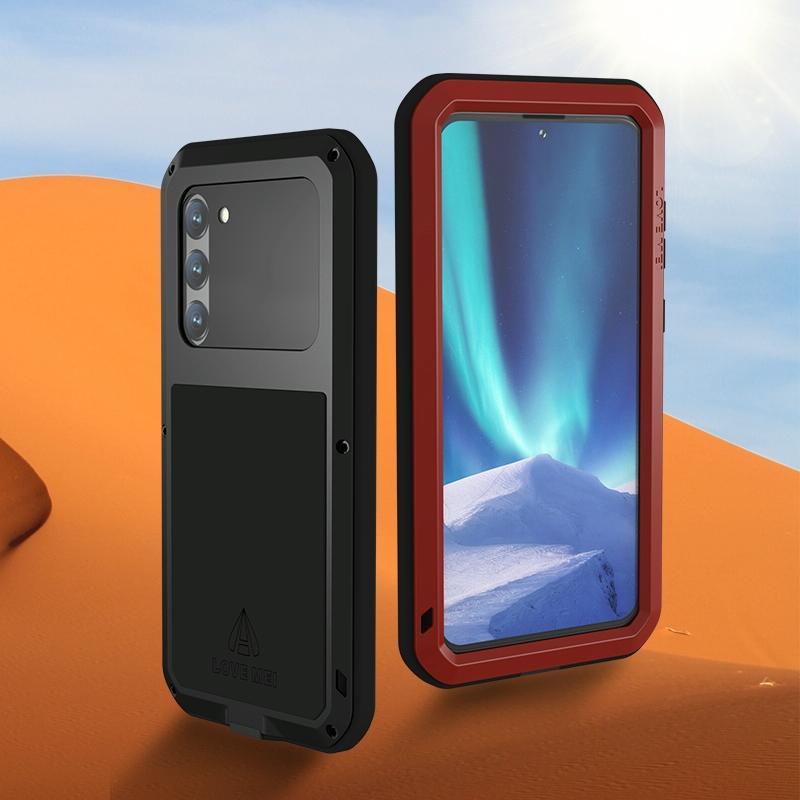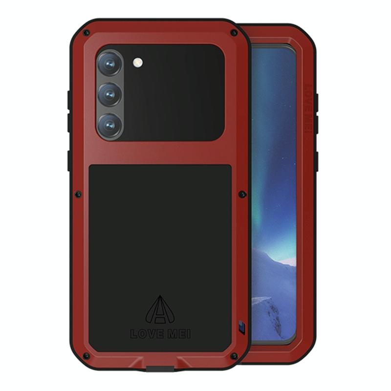 Θήκη κινητού LOVE MEI για Samsung Galaxy S23+ 5G, μεταλλική ανθεκτική σε κραδασμούς, αδιάβροχη, αδιάβροχη από σκόνη (Στρατιωτικό Πράσινο) (Κόκκινο)