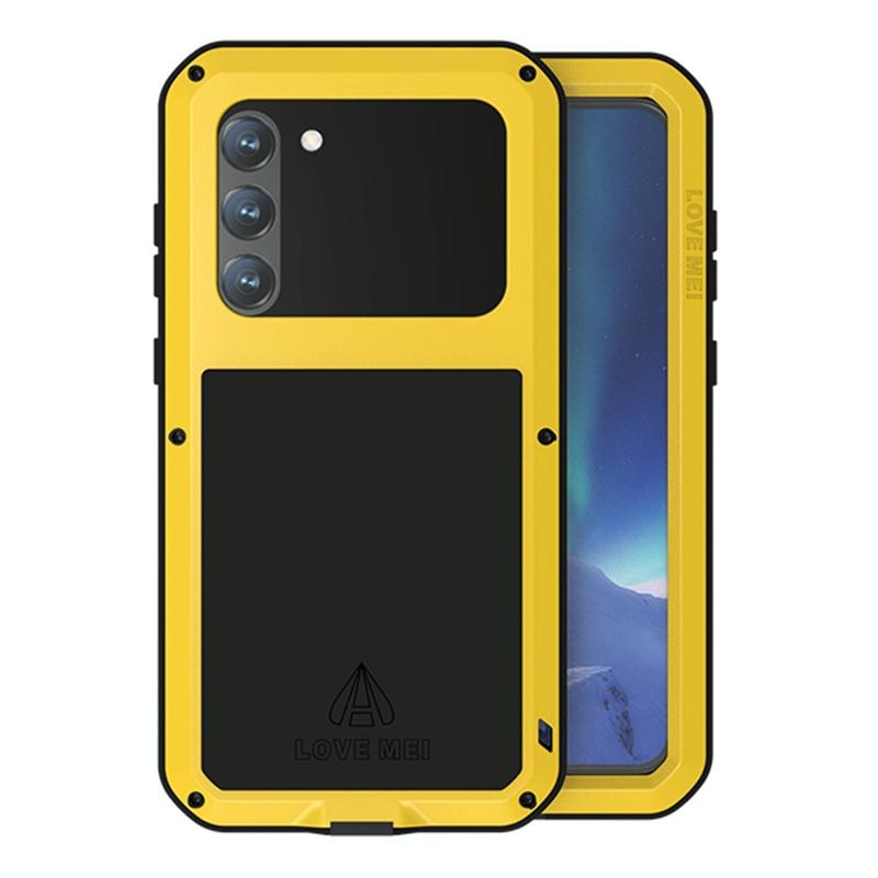Θήκη κινητού LOVE MEI για Samsung Galaxy S23+ 5G, μεταλλική ανθεκτική σε κραδασμούς, αδιάβροχη, αδιάβροχη από σκόνη (Στρατιωτικό Πράσινο) (Κίτρινο)