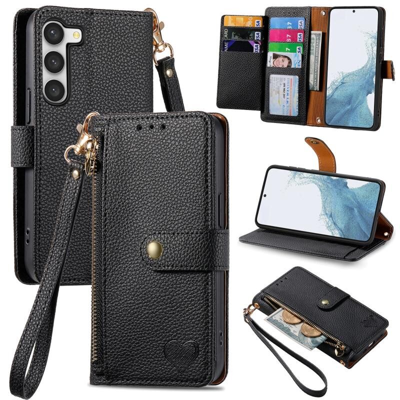 Για Samsung Galaxy S23 5G αγάπη φερμουάρ Lanyard δέρμα τηλέφωνο υπόθεση (μαύρο)