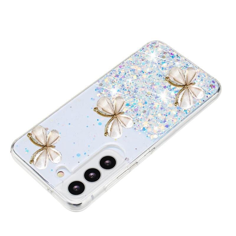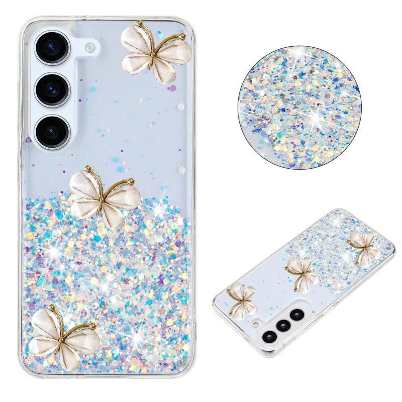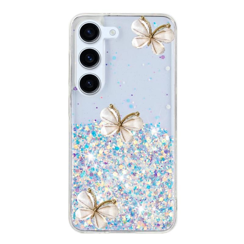 Θήκη τηλεφώνου TPU για Samsung Galaxy S23 5G, Λαμπερός Αστρικός Ουρανός, Glitter, Πεταλούδα (Ροζ)