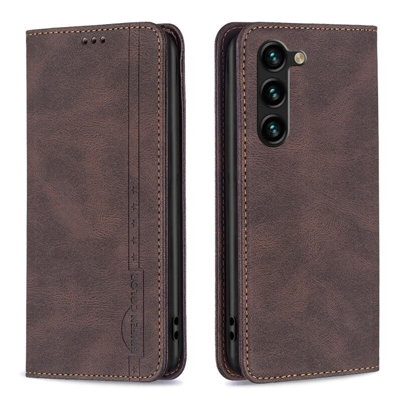 Για Samsung Galaxy S23+ 5G Μαγνητικό RFID Blocking Anti-Theft Δερμάτινη θήκη τηλεφώνου (Καφέ)