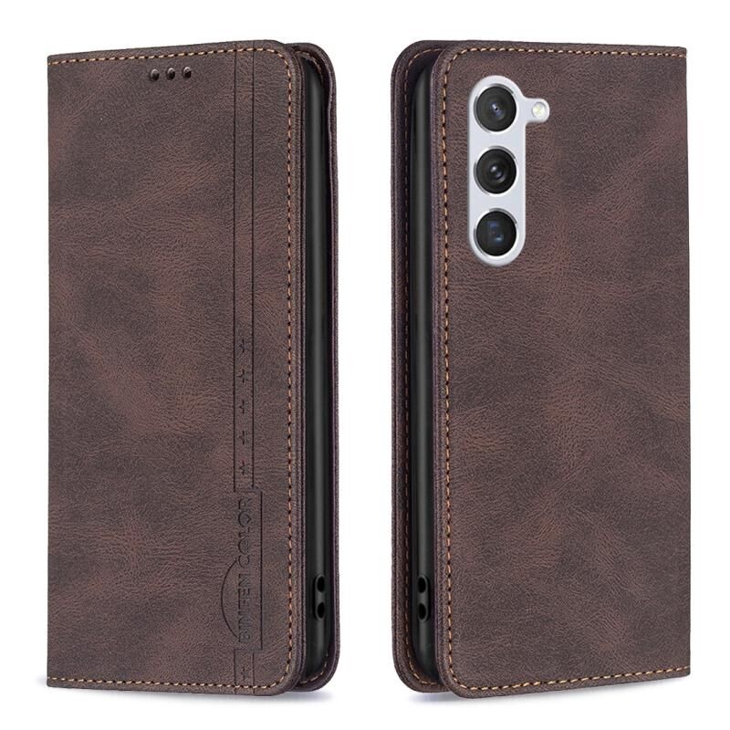 Για Samsung Galaxy S23 5G Μαγνητικό RFID μπλοκάρισμα Anti-Theft Δερμάτινη θήκη τηλεφώνου (Καφέ)