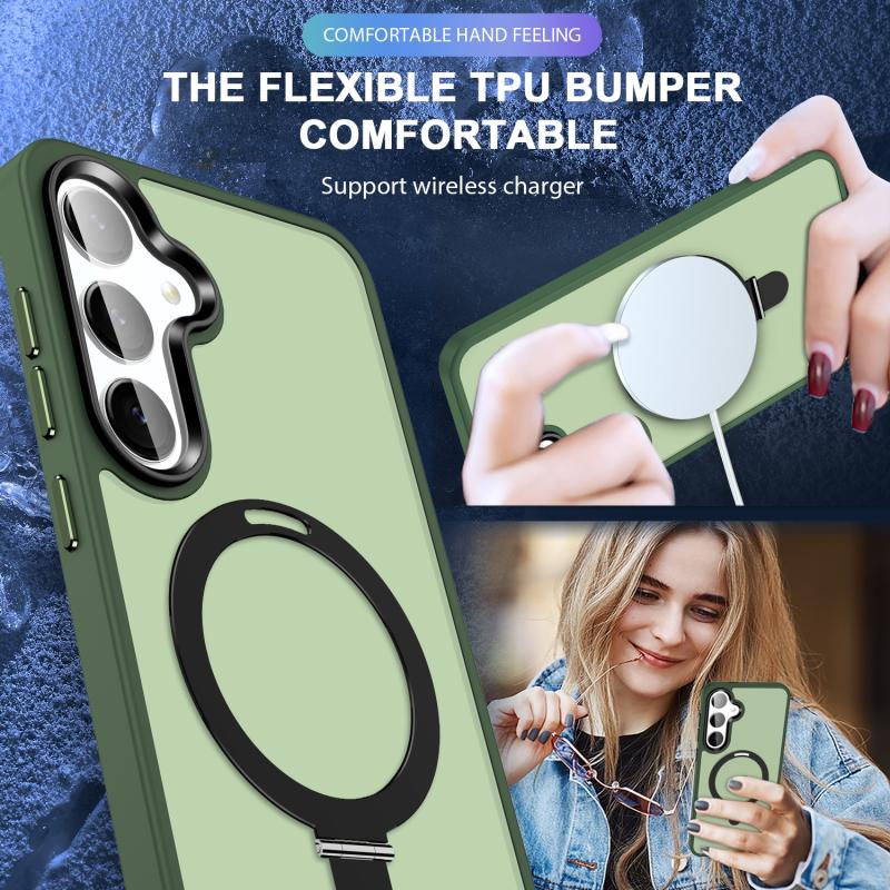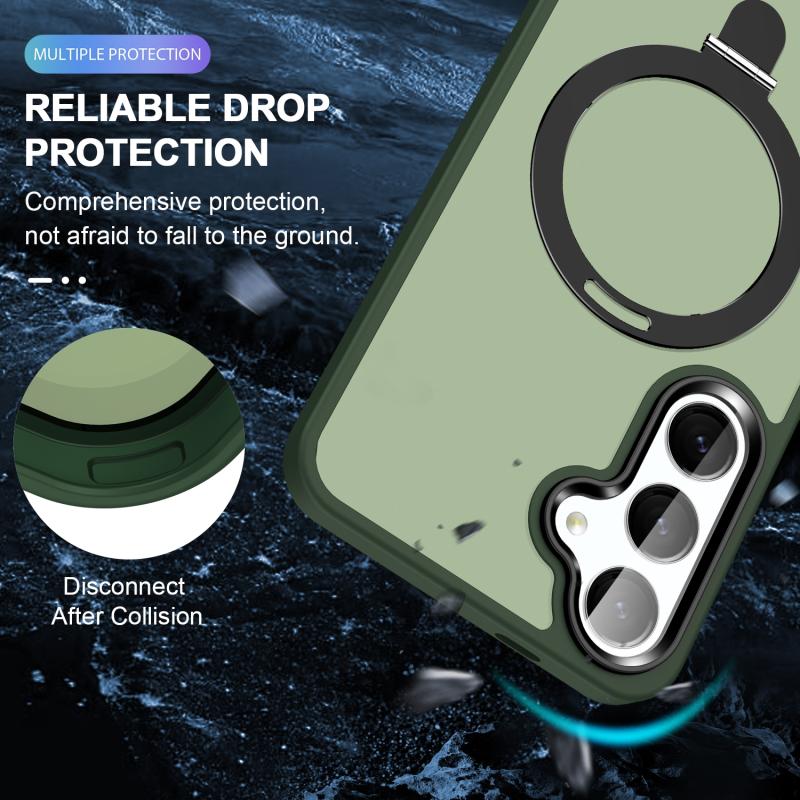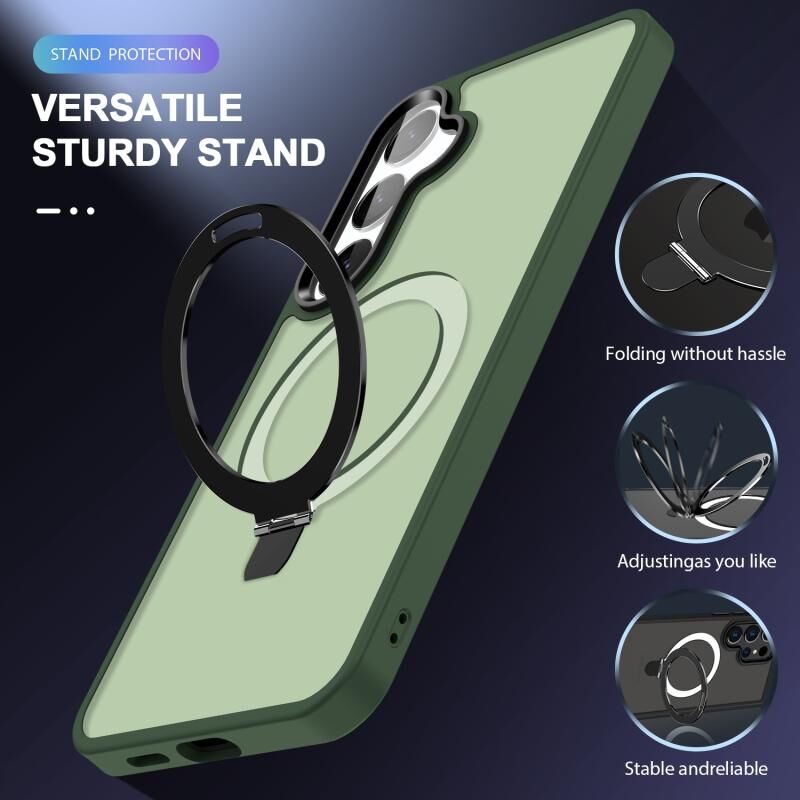 6. Περιστρεφόμενη Βάση Δακτυλιδιού 360: Με έναν συμπαγή και πρακτικό σχεδιασμό, συνδυάζουμε απρόσκοπτα την ισχυρή τεχνολογία MagSafe με μια αναδιπλούμενη βάση. Η ενσωματωμένη βάση στήριξης περιστρέφεται αβίαστα 360 μοίρες και διπλώνει 120 μοίρες, προσφέροντάς σας την ιδανική γωνία θέασης τόσο για οριζόντιο όσο και για κάθετο προσανατολισμό. Όταν είναι διπλωμένη, ευθυγραμμίζεται απρόσκοπτα με την πλάτη της θήκης, διατηρώντας ένα λεπτό προφίλ για εύκολη τοποθέτηση στην τσέπη.